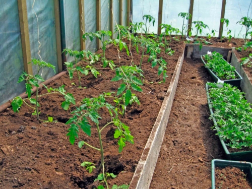 : после высадки им будет нужен обильный полив: это поможет быстрее прижиться на новом месте. Если поливать растения вечером, то за ночь на стенках и на листьях скопится роса, повысится влажность, а это губительно для томатов. После утреннего полива примерно через два часа можно будет немного проветрить теплицу (не допускайте сквозняков), да и солнце быстрее высушит воздух.