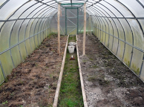 После суровых зимних морозов весной парник и почву следует разогреть. Это позволит начать высадку рассады в наиболее раннее время. После того как растает снег, необходимо достаточно обильно проводить полив грунта горячей водой. Заложенный в осеннее время компост или навоз начнут свое воздействие и спустя несколько дней можно будет приступить к посадкам. Также эффективный разогревающий результат оказывает и использование биотоплива, которым является навоз. Необходимое его количество определить достаточно просто: объем должен составлять одну четвертую часть от полного объема грунта в парнике. Также в грядки следует внести опилки, которые способствуют разрыхлению грунта. Поверх навоза засыпается слой свежей земли, а затем зола, минеральные удобрения.